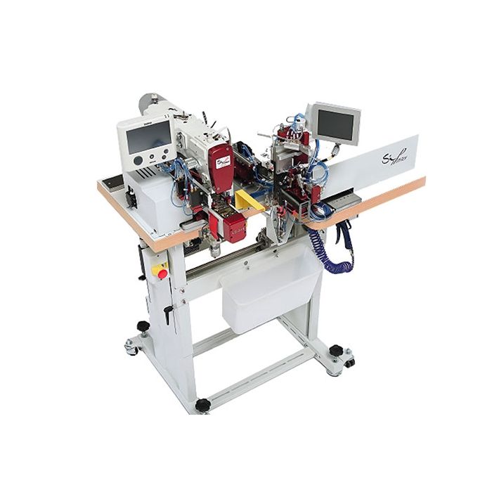 Unidad automática y programable para la aplicación de pasadores en tejano y pantalón.