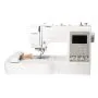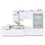 Puerto USB para importar diseños, simplemente inserte una unidad flash USB e importe su diseño de bordado directamente a la máquina. Combinación de diseños de bordado, puede bordar varios diseños juntos para una creación original, todo lo que tienes que hacer para combinarlos es presionar el botón “Agregar” en la pantalla. Patrones de marco integrados que puede combinar los 14 estilos de puntada y las 10 formas de marco disponibles (círculo, cuadrado, etc.).