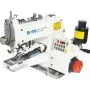 1 aguja de base cilíndrica con engrase manual y corte de hilo automático, botón simple de 2 y 4 agujeros y pespunte en “X”.