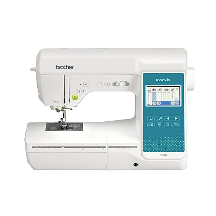 Diseñada para diseñadores: la nueva máquina Brother F580 combinada de coser, acolchar y bordar Innov-is F580. Fácil de usar, cuenta con una pantalla táctil LCD a color y, por supuesto, está repleto de llamativos diseños de bordado y las innovaciones de costura de la marca registrada de Brother.