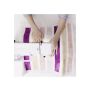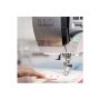 Y lo más fantástico es que acolcha cualquier tipo de materiales, gracias al arrastre dual de Bernina, que arrastra la tela de manera uniforme por la parte superior e inferior. Es fácil de encajar y de plegar cuando no se use.