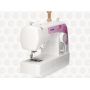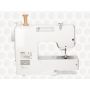 Ojal automático en cuatro tiempos, costura recta, zig zag y cinco costuras decorativas.