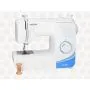 Máquina de coser mecánica para clientes que van a hacer un uso doméstico pero con prestaciones de una máquina de brazo libre. Ojal automático en 4 tiempos, 25 costuras preprogramadas. Es una máquina muy silenciosa y suave.. Máquina de brazo librecon el que puede realizar costuras circulares como mangas, bajos de pantalón y costuras abiertas como sábanas, cortinas, etc.