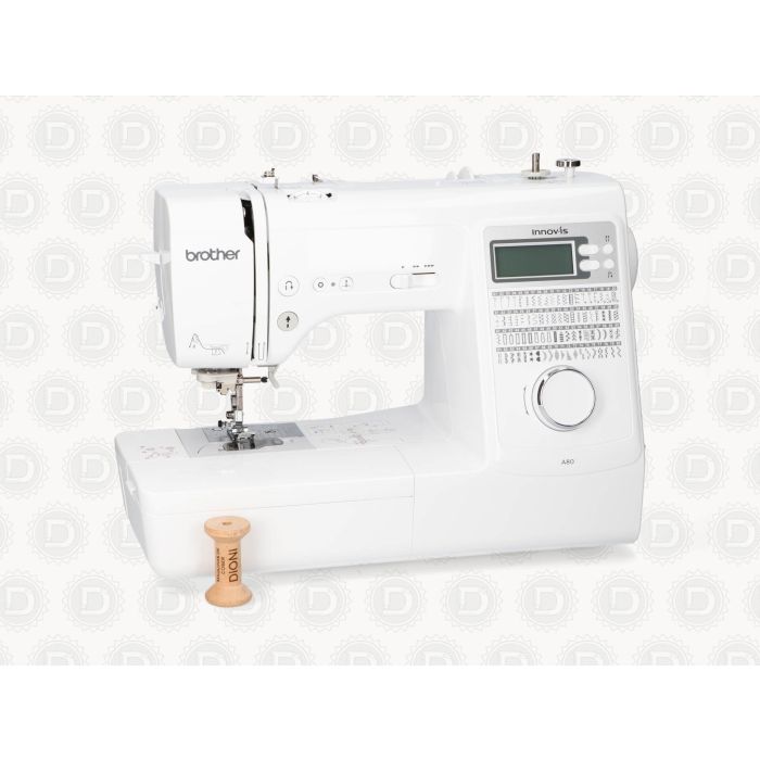 El siguiente modelo del nuevo serial de Brother es la Brother A80, es un máquina electrónica con botón Start/ Stop, remate de puntada, selección de posición de aguja…