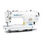 Máquina de coser industrial de pespunte recto de 1 aguja para materiales gruesos. Con doble arrastre por aguja y por diente. Modelo con servomotor de CA de bajo consumo, caja de control e interruptor de alimentación integrados en el cabezal de la máquina (conjunto mecatrónico "todo en uno"). Gracias a la integración de todos los elementos la máquina trabaja silenciosamente y sin vibraciones adversas. El servomotor de CA ahorra hasta un 70 % de energía en comparación con un motor electrónico convencional o un motor de embrague. Equipado con ventilador vortex que aspira el aire exterior y asegura una refrigeración más eficiente.
