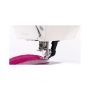 La zona de costura situada a la derecha de la aguja tiene un tamaño muy amplio 250mm que le permitirá coser cantidades grandes de tejido o guata. Su doble arrastre integrado arrastrá el tejido desde arriba y desde abajo.