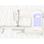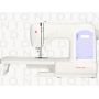 Cuenta con un amplio espacio de trabajo, su mesa extensible nos ayuda a apoyar los trabajos de gran volumen y que asi nos sea mas fácil la costura, el brazo libre nos ayuda con las prendas tubulares como son mangas de camisa o también los bajos de los pantalones.