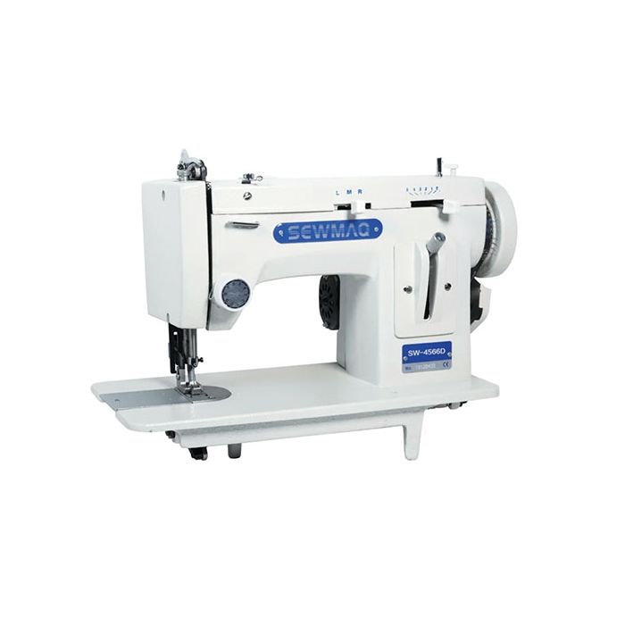 Máquina de coser zig zag y pespunte portátil. Cuenta con un arrastre doble por prensatelas y por diente. Incluye el motor de 220V 150w, ensamblado en la parte trasera de la máquina.