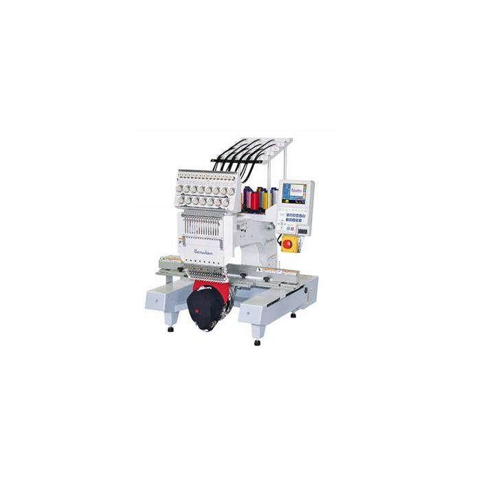 Máquina industrial de bordar Barudan BEKT S1501 CBIII, de una cabeza de 15 hilos y una cabeza, perfecta para talleres dedicados a la personalizacion de ropa o accesorios.