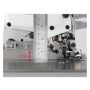 Equipada con sistema diferencial con regulación para género fino y medio, posicionador de aguja, regulador de velocidad, luz LED integrada y motor Direct Drive.