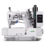 Recubridora industrial Zoje C5000-356-D3C con base plana de 3 agujas y 5 hilos con recubrimiento superior e inferior. Equipada con cortahilos superior e inferior electricos motor servo con una velocidad de 6000ppm, alzapatas electrico y luz LEDs