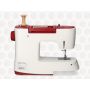 Máquina de coser mecánica básica, perfecta para iniciarse en la costura, ya que su sencillez de uso facilita el aprendizaje. Su diseño permite un ángulo de visión óptimo y una superficie de trabajo cómoda.