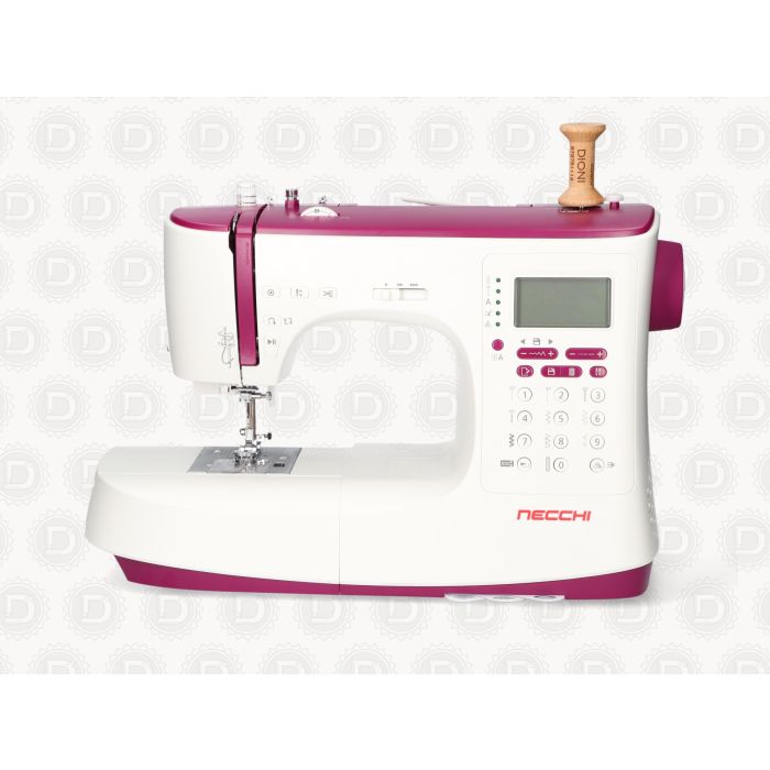 La máquina de coser electronica Necchi NC-204D cuenta con 439 puntadas, incluyendo 3 alfabetos, 13 tipos de ojales automáticos en un paso con el nuevo pie electronico (mide el boton y lo ajusta para un ojal perfecto). Dispone de boton cortahilos automatico, Regulador de Velocidad y Start/Stop . Incluye 13 prensatelas diferentes y mesa de extension.