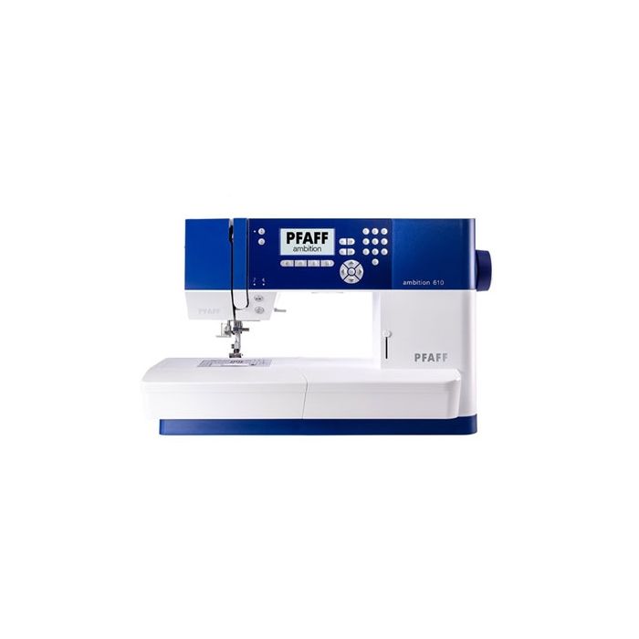 Entre las nuevas maquina de Pfaff encontramos este modelo, Quilt Ambition 610 es el modelo mas pequeño en cuanto a puntadas se refiere incluye 110 puntadas, entre estas están puntadas útiles, decorativas, ojales, puntadas para Quilt, puntadas de cruz y dobladillos abiertos, ademas de las puntadas decorativas incluye un programa de doble aguja.