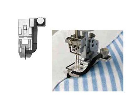 Gracias a su guía para centrar, este pie permite coser perfectamente derecho siguiendo una línea o el borde de la tela.