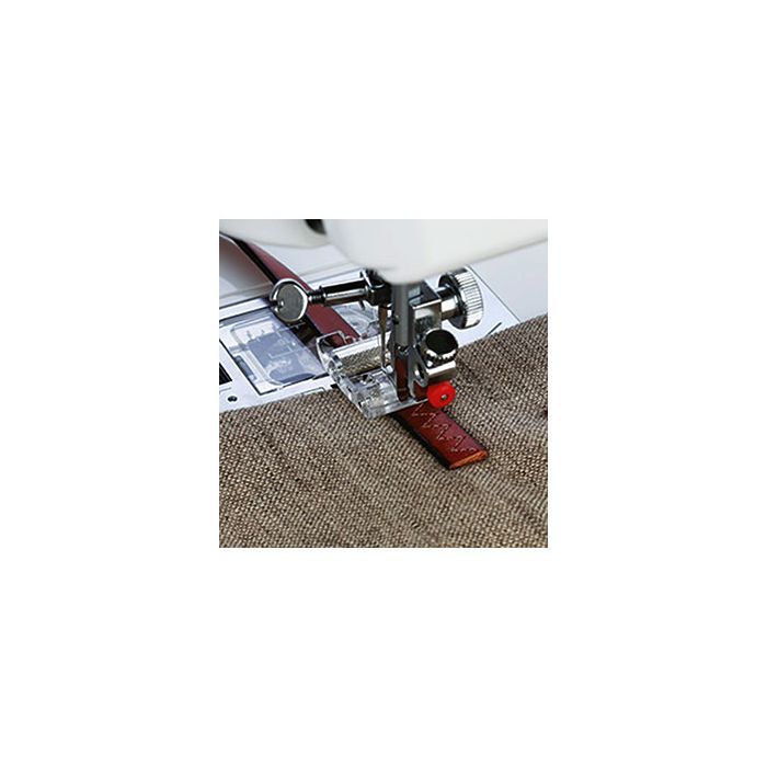 Este prensatelas dispone de ruedas que se mueven sobre la tela y que funciona como el doble arrastre pero deslizante, permitiendo coser las costuras gruesas y las superficies irregulares.