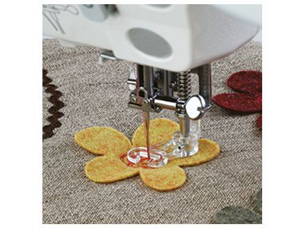 Este prensatelas tambien es conocido como prensatelas de bordado, este prensatelas de zurcido se usa a la hora de realizar un bordado libre o un zurcido para garantizar una puntada perfecta, minimizar los saltos de puntada y el fruncido, y también para proteger sus dedos mientras mueve la tela libremente debajo de la aguja. Para usarlo libremente hay que bajar los dientes de la máquina.