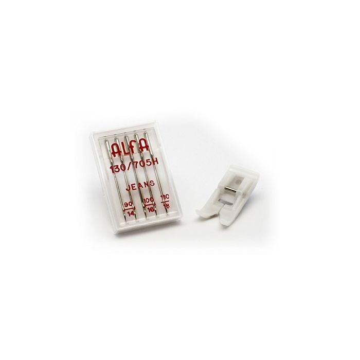 - Estuche de agujas para vaqueros y prensatelas de teflón.