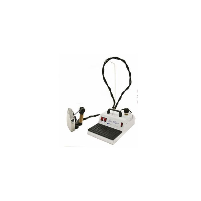 Plancha profesional con capacidad para 1.5 litros de agua. La caldera es de color blanco y la plancha de acero inoxidable. Fácil manejo.