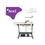 MESA TQC PREMIUM - la más alta calidad de superficie de la mesa hecha de contrachapado de abedul resistente a la humedad (30 capas), que amortigua perfectamente las vibraciones. PREMIUM superficie de la placa superior está recubierta con un laminado especial con una estructura adecuada para la industria textil. Resistente al impacto, a la abrasión y astillas máximo. Lados protegidos por listones ABS. Frontal de la mesa desviada de facilitar el acceso a la parte superior de la cabeza de la máquina. Estándar TEXI está "sumergido" máquina overlock, montado sobre la placa debajo de la mesa hecha de clase alta, 22 capas de madera contrachapada, de 28 mm de espesor que asegura la estabilidad de la máquina (única y la mejor solución). Bajo pedido es posible el montaje en la tapa de tabla.