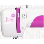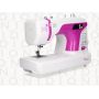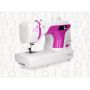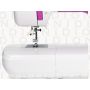 Máquina de coser mecánica multifuncional con selección de puntadas electrónicas y regulación del ancho de puntada.