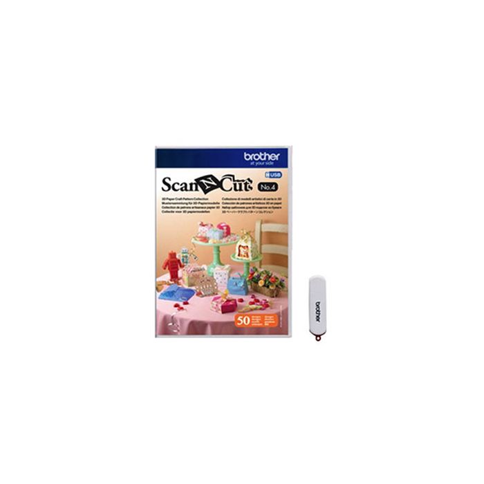 El USB 4, contiene 50 patrones de corte para realizar montajes tridimensionales, cajitas de regalo, figuras, sobres, bomboneras... Disponible para máquinas Scan&cut de Brother.